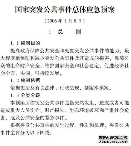 國(guó)家突發(fā)公共事件總體應(yīng)急預(yù)案