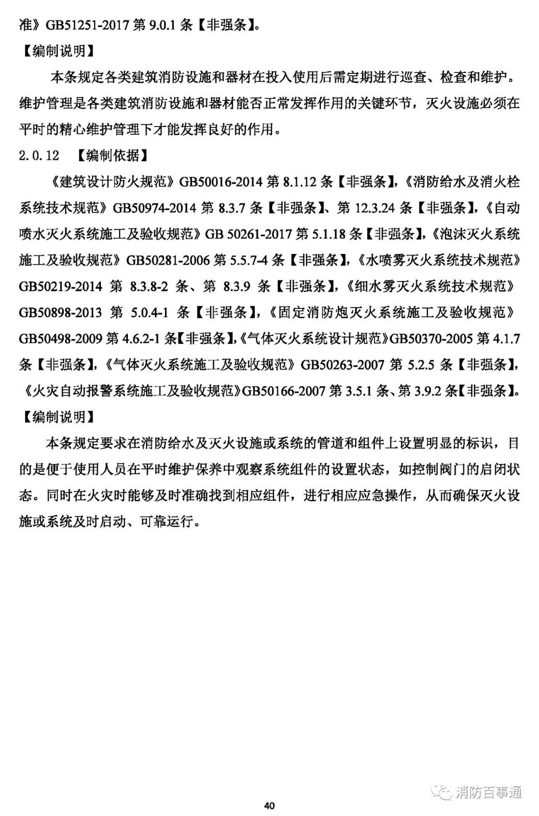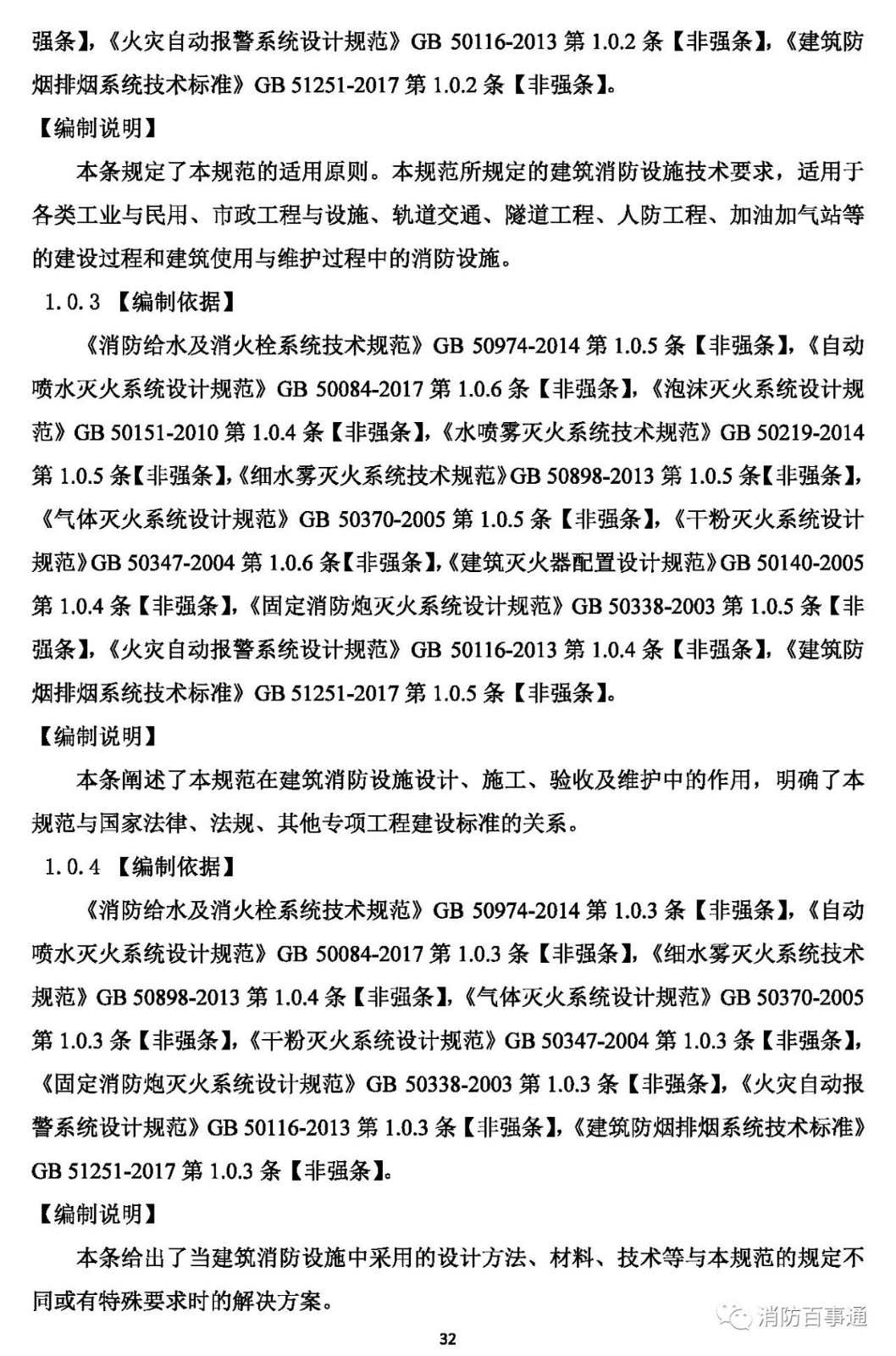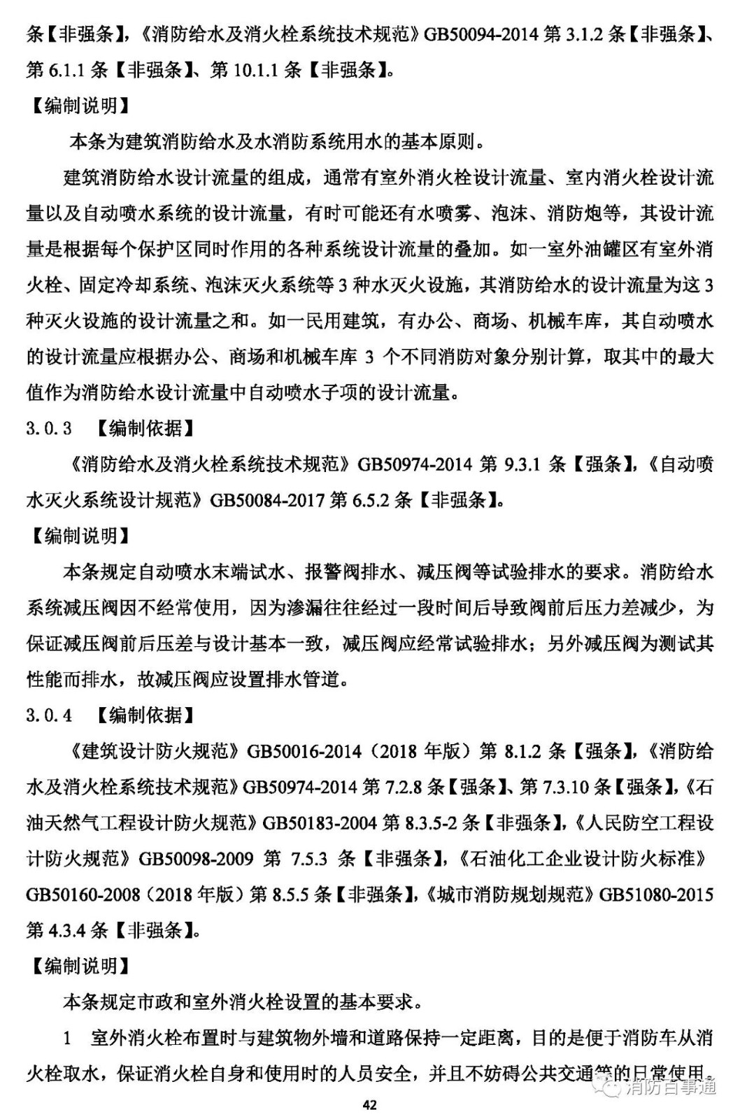 1.0.5 執(zhí)行本規(guī)范必須同時(shí)加強(qiáng)工程質(zhì)量安全管理,嚴(yán)格規(guī)范的實(shí)施監(jiān)督。建筑在規(guī)劃、設(shè)計(jì)、施工和使用中的消防設(shè)施,除應(yīng)遵守本規(guī)范外,尚應(yīng)符合國(guó)家現(xiàn)行有關(guān)規(guī)范的規(guī)定。