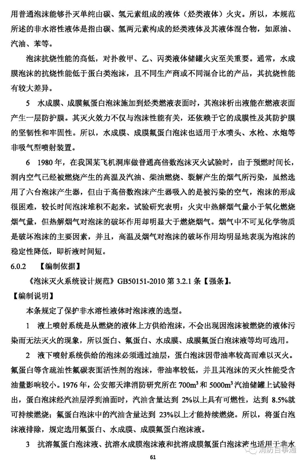 6.0.2 用于保護(hù)非水溶性甲、乙、丙類液體儲(chǔ)罐的低倍數(shù)泡沫滅火系統(tǒng),其泡沫液應(yīng)符合下列規(guī)定: