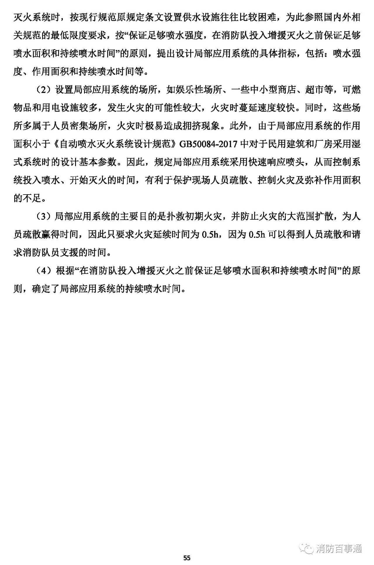 4.0.9 建筑中局部應(yīng)用系統(tǒng)保護(hù)區(qū)域內(nèi)的房間和走道均應(yīng)布置快速響應(yīng)噴頭,噴水強(qiáng)度不應(yīng)低于6L/min·㎡,持續(xù)噴水時(shí)間不應(yīng)低于0.5h。