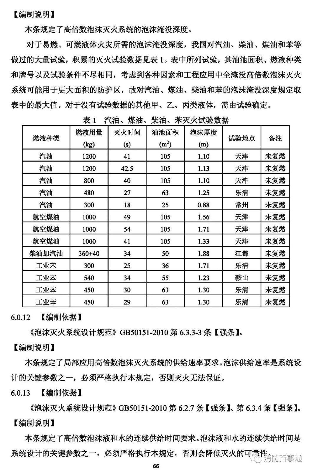 4 用于撲救非水溶性可燃液體火災(zāi)的泡沫-水噴淋系統(tǒng)、泡沫槍系統(tǒng)、泡沫炮系統(tǒng),其水成膜泡沫液在緩釋放時(shí)的抗燒時(shí)間不應(yīng)小于10min.;