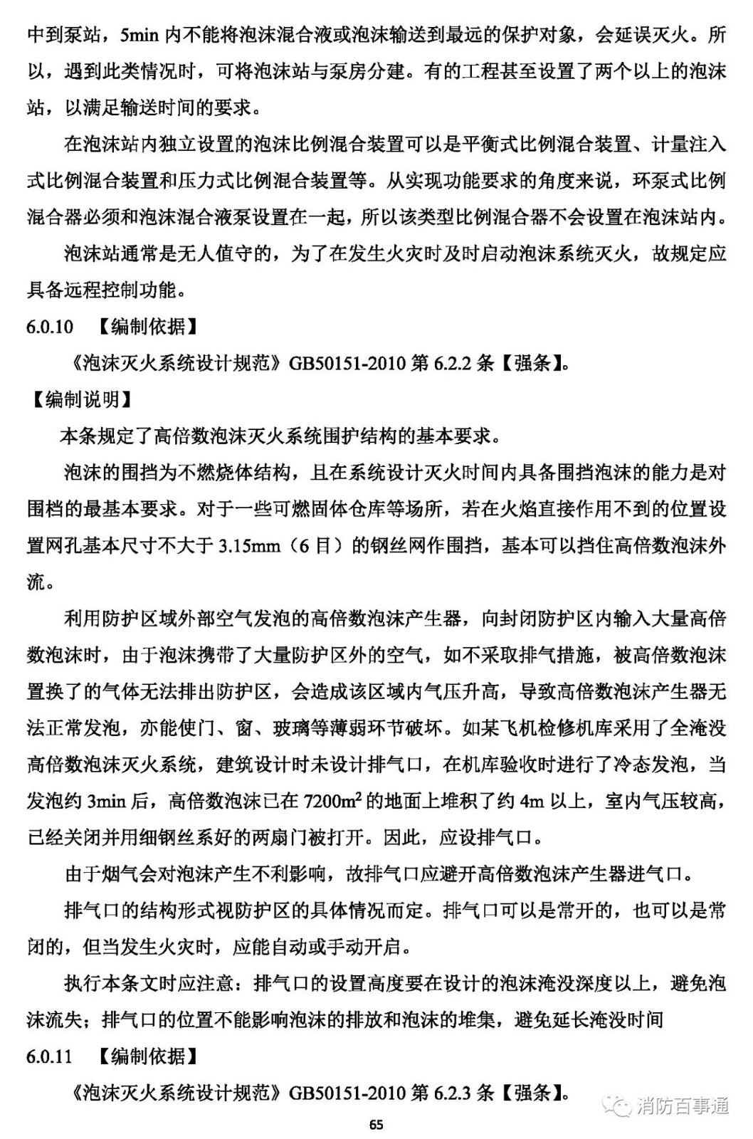 6 利用熱煙氣發(fā)泡的高倍數(shù)泡沫滅火系統(tǒng),應(yīng)使用耐溫耐煙型高倍數(shù)泡沫液。