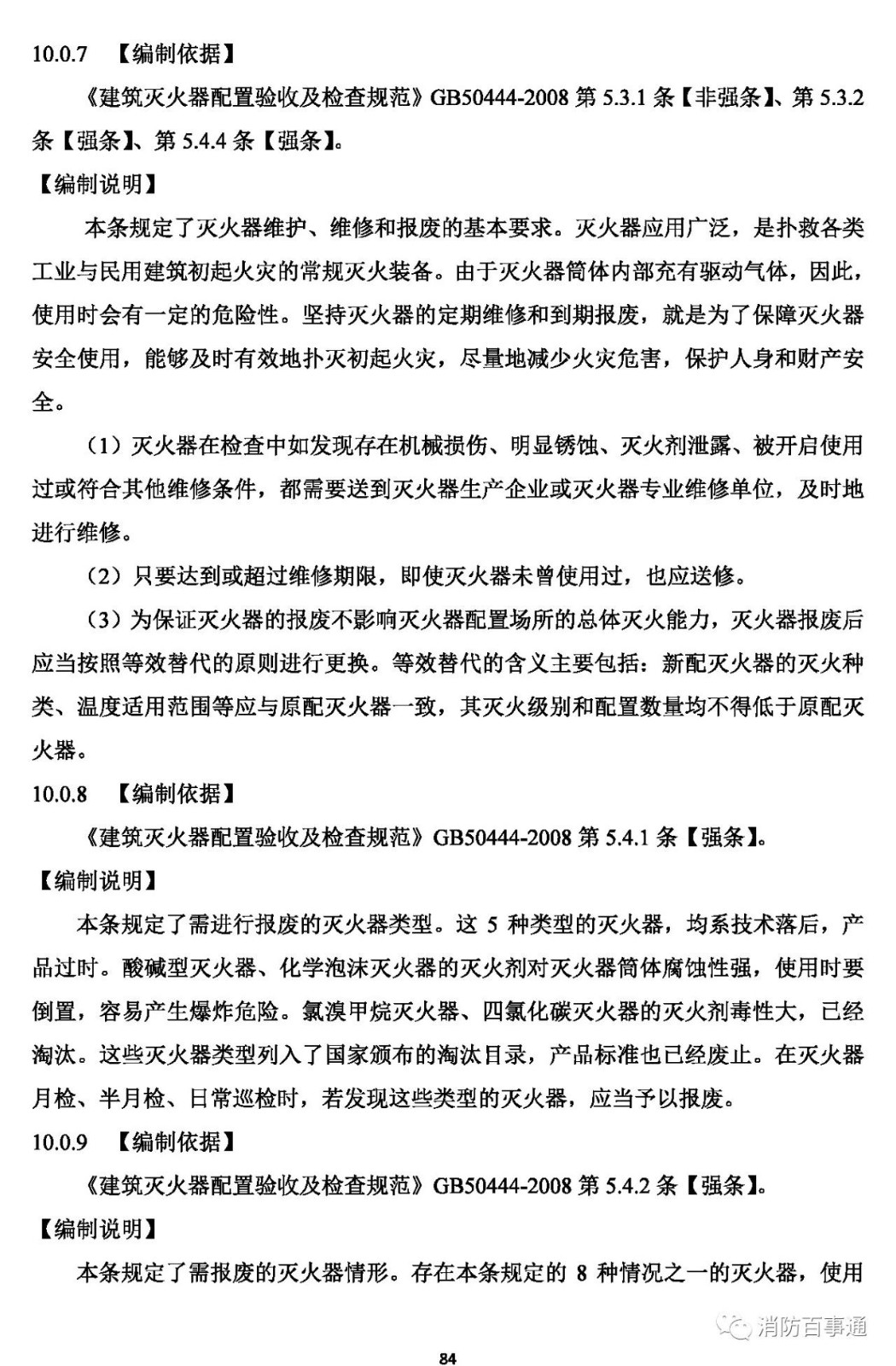 10.0.8 滅火器應(yīng)按規(guī)定定期維護(hù)、維修和報(bào)廢。滅火器報(bào)廢后,應(yīng)按照等效替代的原則進(jìn)行更換。