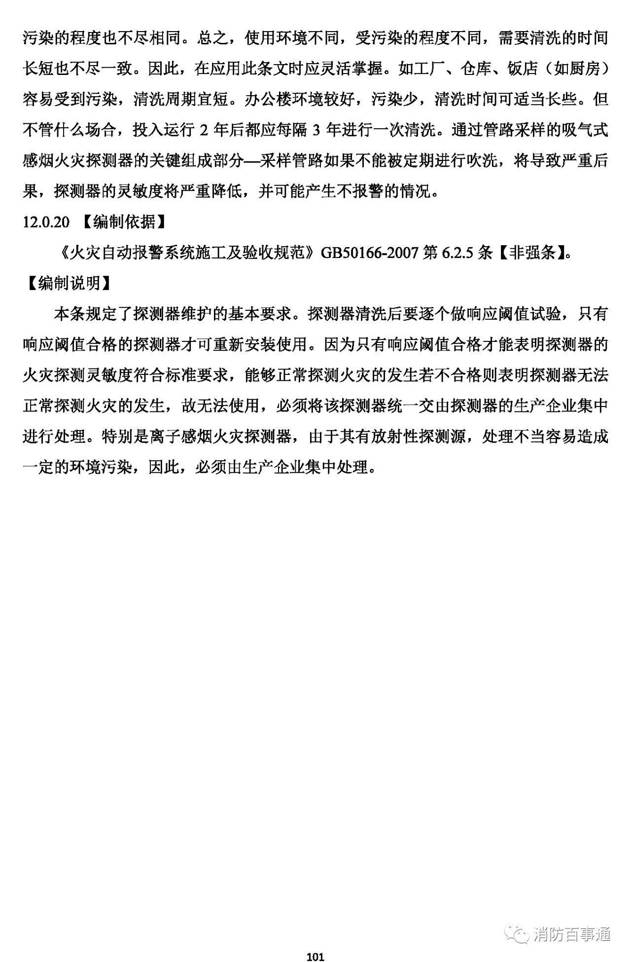 12.0.19 點(diǎn)型感煙火災(zāi)探測(cè)器安裝 2 年后,每3 年應(yīng)至少全部清洗一次;通過(guò)采樣管采樣的吸氣式感煙火災(zāi)探測(cè)器,每年至少應(yīng)對(duì)采樣管吹掃一次。