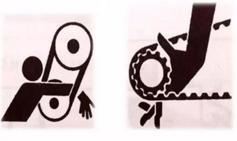 旋轉(zhuǎn)部件和成切線運(yùn)動(dòng)部件間的咬合處。如動(dòng)力傳輸皮帶和皮帶輪、鏈條和鏈輪、齒條和齒輪等。