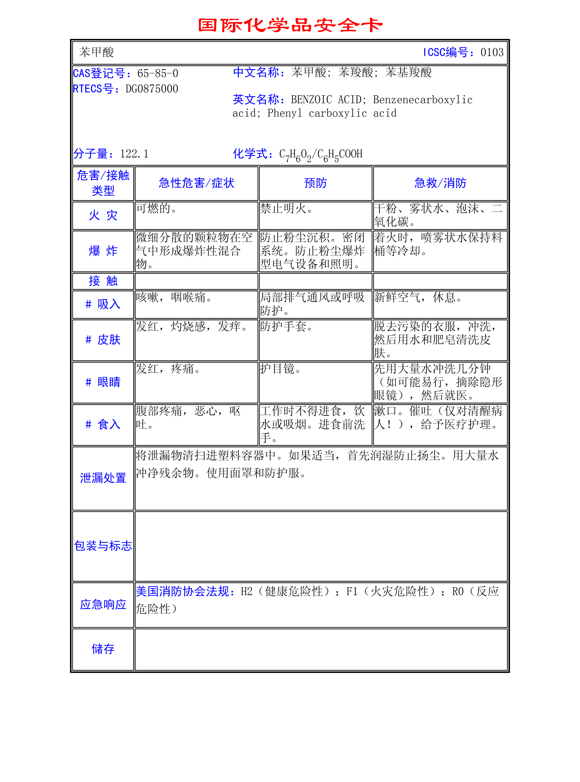 苯甲酸MSDS