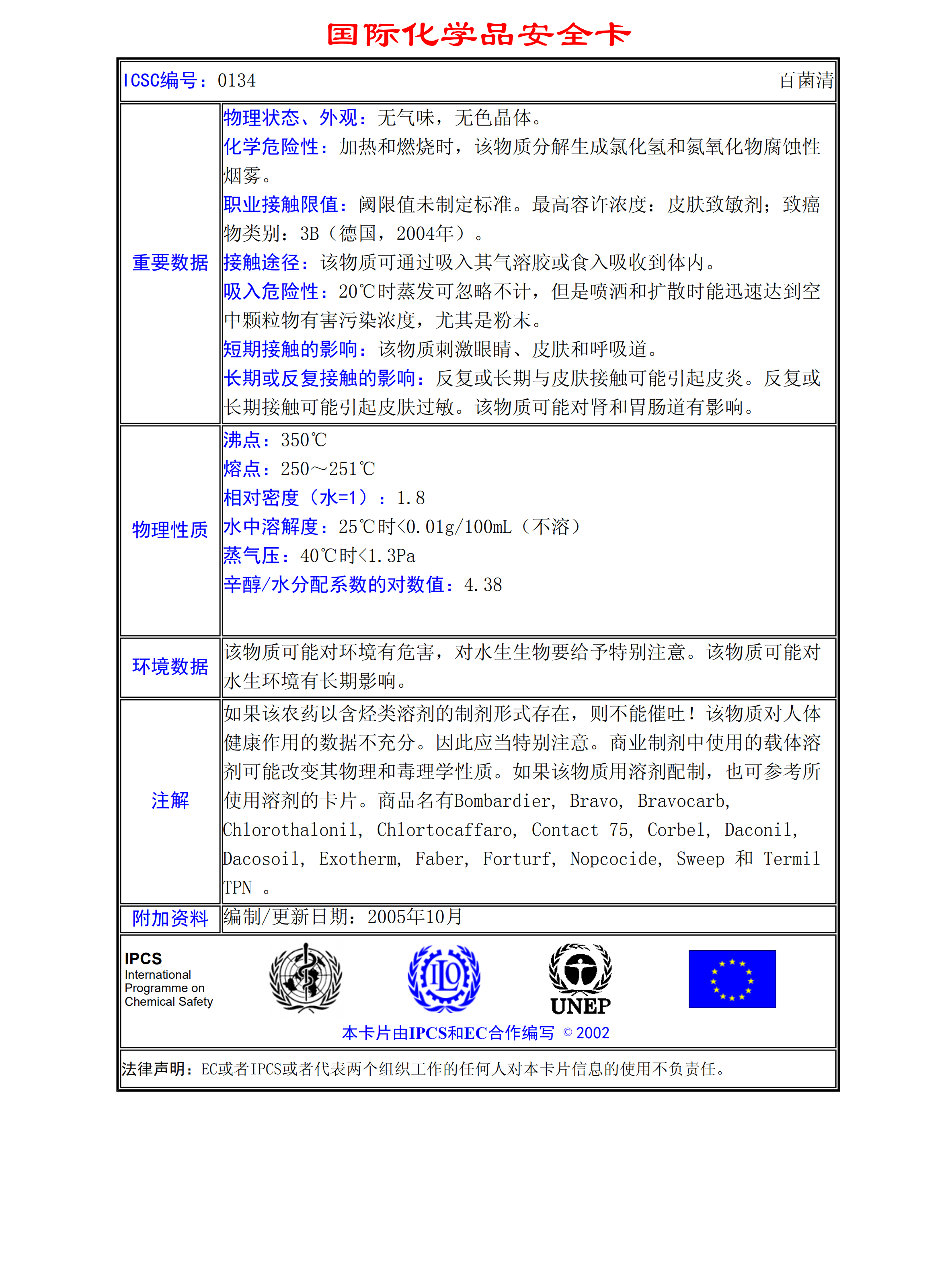 百菌清MSDS
