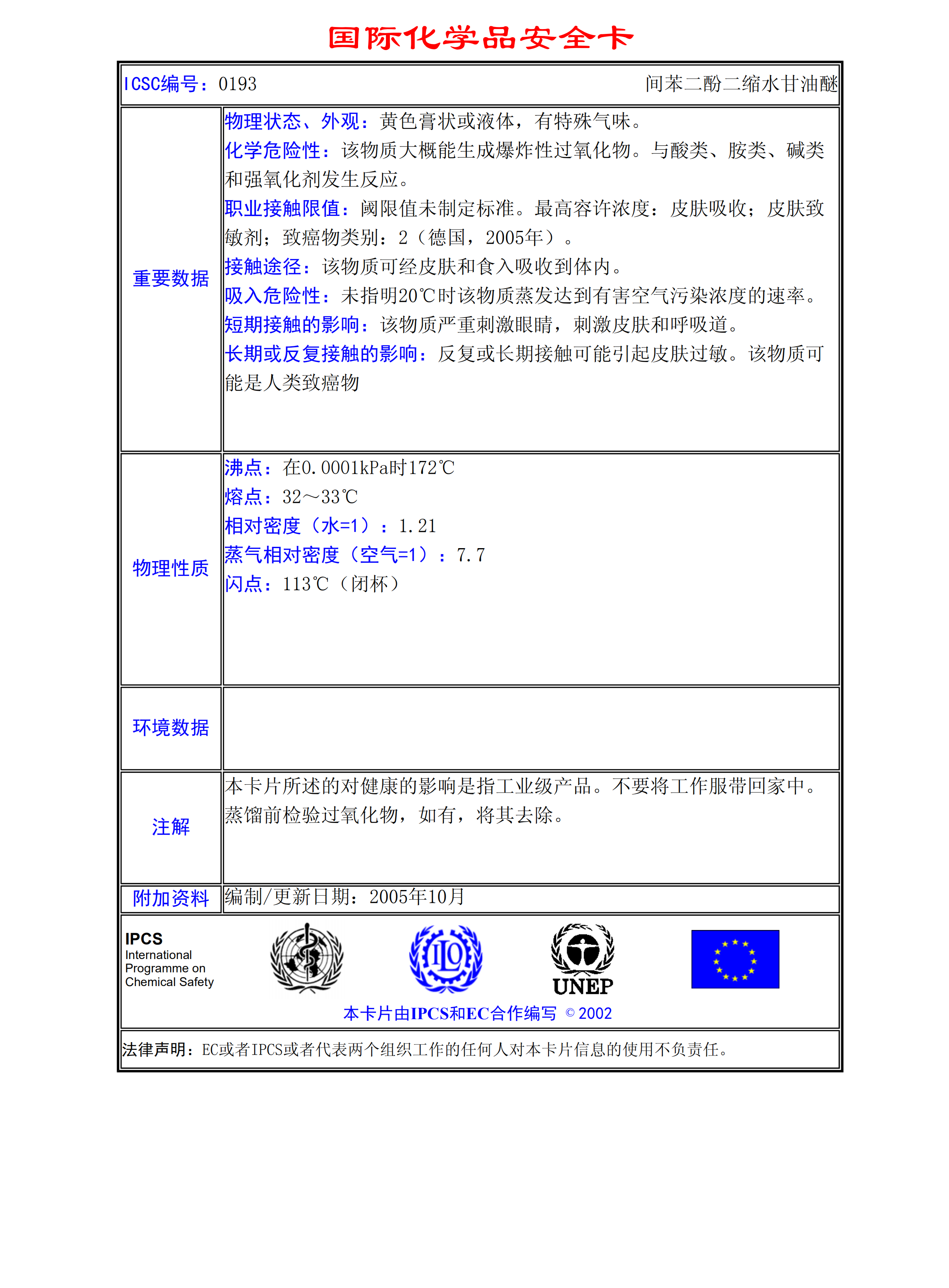 間苯二酚二縮水甘油醚MSDS
