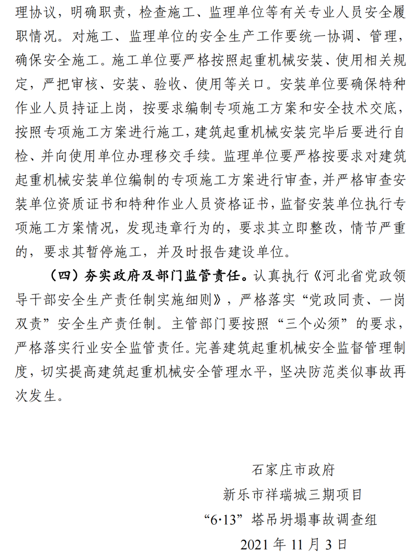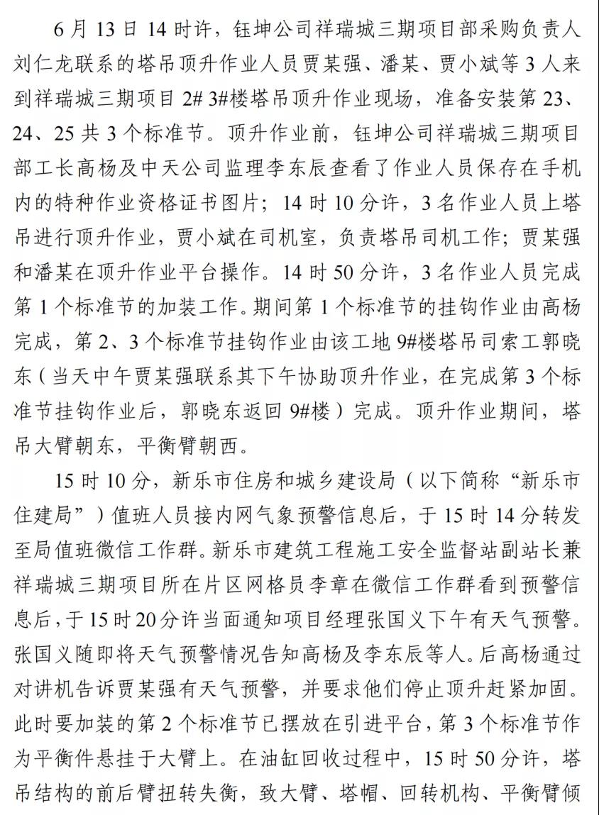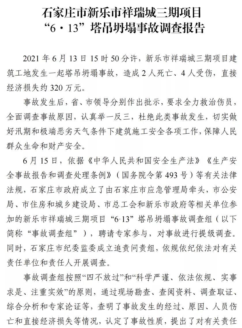 河北石家莊新樂市祥瑞城建筑工地在塔吊頂升作業(yè)事故調(diào)查報(bào)告