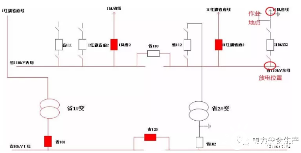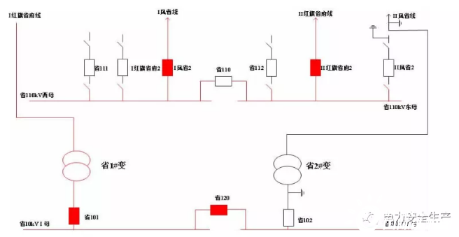 事發(fā)項目為某公司110千伏某變電站110千伏配電裝置改造,改造內(nèi)容為更換110千伏室內(nèi)敞開式手車斷路器,施工中標單位為某集團有限公司電力安裝分公司(省管產(chǎn)業(yè)單位,簡稱“安裝分公司”)。為不影響重要用戶供電,改造期間變電站采用Ⅰ紅旗省府線直接串帶省1#變、Ⅱ鳳省線直接串帶省2#變的過渡方式運行。6月12日改造完成后,110千伏母線恢復運行。(運行方式見圖1、圖2)