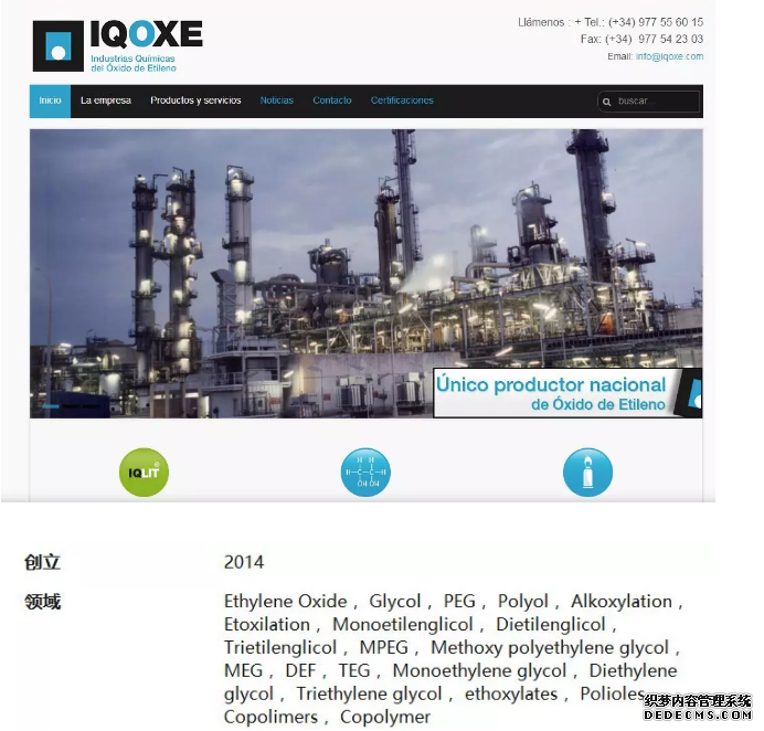 根據(jù)事發(fā)公司IQOXE的官網(wǎng)網(wǎng)站,該企業(yè)是西班牙唯一的環(huán)氧乙烷生產(chǎn)商。其中50%用于生產(chǎn)乙二醇,乙二醇是生產(chǎn)PET聚合物的主要原料之一。環(huán)氧乙烷是一種用于制造洗滌劑、溶劑和其他產(chǎn)品的化合物。
