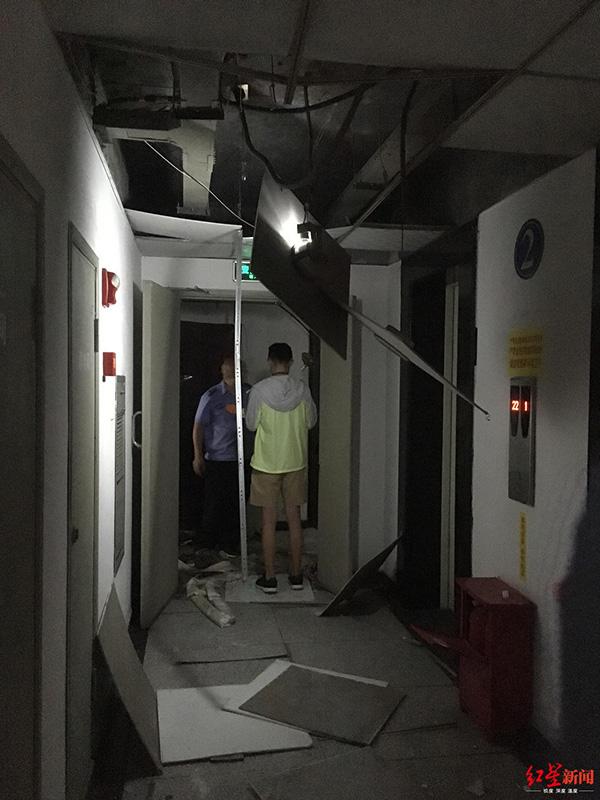 紅星新聞記者趕到現(xiàn)場發(fā)現(xiàn),該住戶家中一片狼籍,防盜門整體已經(jīng)彎曲,除了屋內(nèi),外面的過道和一戶鄰居家中,也被震得七零八落。