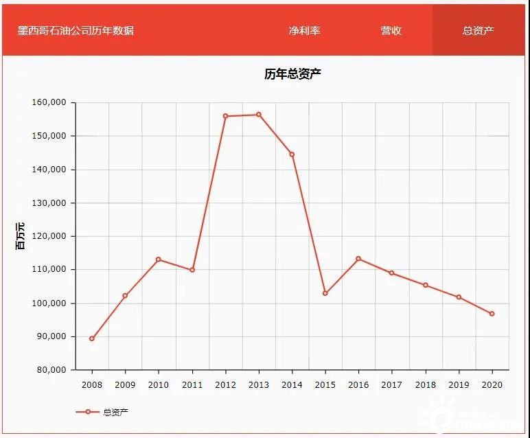 事實(shí)上,墨西哥曾屢屢嘗試改革,卻舉步維艱。2014年該國通過法案,希望吸引外資和私人資本參與到油氣勘探生產(chǎn)過程。受此影響,墨國油總資產(chǎn)在兩年內(nèi)出現(xiàn)小幅上升,但隨后又開啟了跌跌不休的模式。