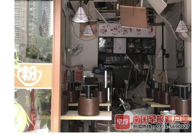 當(dāng)天上午9時許,記者在現(xiàn)場看到,出事的粉店位于小區(qū)沿街商鋪,鋪面前已拉起了警戒線。現(xiàn)場沒有明火,店內(nèi)多處玻璃被震碎,一片狼藉。事發(fā)粉店旁邊的其他店鋪并未受影響,正常營業(yè)。