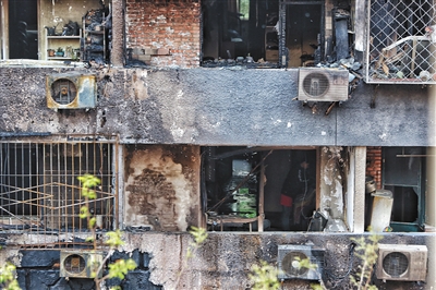 該小區(qū)4號樓1單元101的劉先生家則基本上化為灰燼。記者在他家看到,墻壁被燒成焦黑色,地上沉積著到腳踝的灰燼,整個房子被燒成毛坯房樣?!吧嘲l(fā)、柜子這些大件物品都沒有了,廚房、衛(wèi)生間都是玻璃的,也都燒化了,還有一些字畫。”劉先生說,家里藏有不少洋酒等,損失慘重。