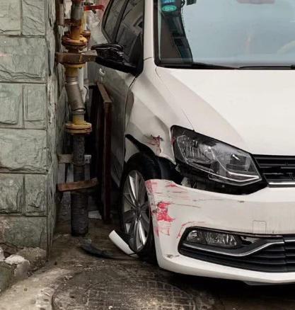 經(jīng)了解,小區(qū)住戶薛某當天駕駛著一輛白色大眾小轎車回家,開到事發(fā)地時,薛某感覺車子后面撞到了什么東西,一時緊張就猛打方向盤,結(jié)果導(dǎo)致車子不停在原地打轉(zhuǎn),不但撞壞了周圍的天然氣管道、消防栓,停在附近的三輛私家車也不同程度受損。