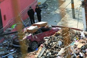 昨日,民*在爆炸現(xiàn)場進行調(diào)查。