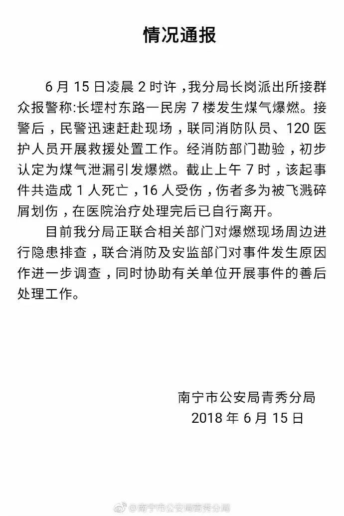 1死16傷!今天凌晨南寧長(zhǎng)堽村一民房發(fā)生爆炸,最新警方通報(bào)來了