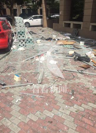 事發(fā)時(shí),周邊居民聽到巨響,隨后有人感到震動(dòng),事故發(fā)生后,該幢大樓內(nèi)不少居民家中受到殃及,幾個(gè)樓層的居民家里玻璃窗被震碎,大量玻璃碎片、窗框、書籍等雜物掉落在小區(qū)通道上,多輛轎車擋風(fēng)玻璃被砸穿,小區(qū)草坪、通道上到處是散落的碎玻璃渣和各種生活用品。